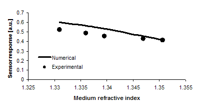 Fig. 13. Sensor response (chemical sensing) function on analyte refractive index.