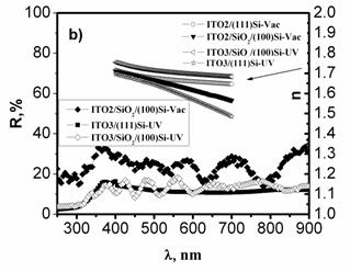 The transmitance, reflectance and refractive index of TCO thin layers deposited on different substrates as a function of wavelength.