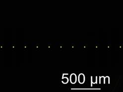 /Figura 2.5: Imagine optică, mărire 20x, iluminare de jos. Serie de orificii de 9 µm cu spațiere de 200 µm |