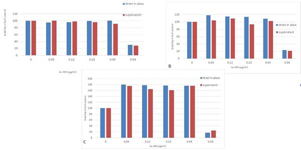 In final s-a putut observa existenta unei limite in ceea ce priveste concentratia AuNPs pentru care viabilitatea celulara scade destul de mult. |