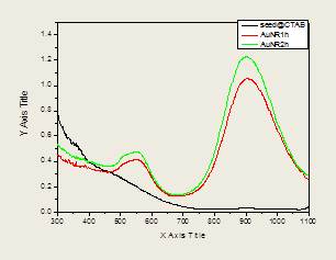 Spectrul UV ale AuNRs la timpi diferiti de reactie |