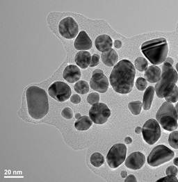 Imagine TEM a AuNPs obtinute prin reducerea mierii de albine |