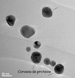 In momentul expunerii AuNPs in mediul de cultura aparitia → unei coroane de proteine |
