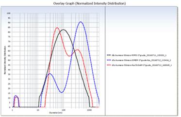 Comparatie intre dH ale AuNPs dispersate in RPMI, DMEM si NaCl |