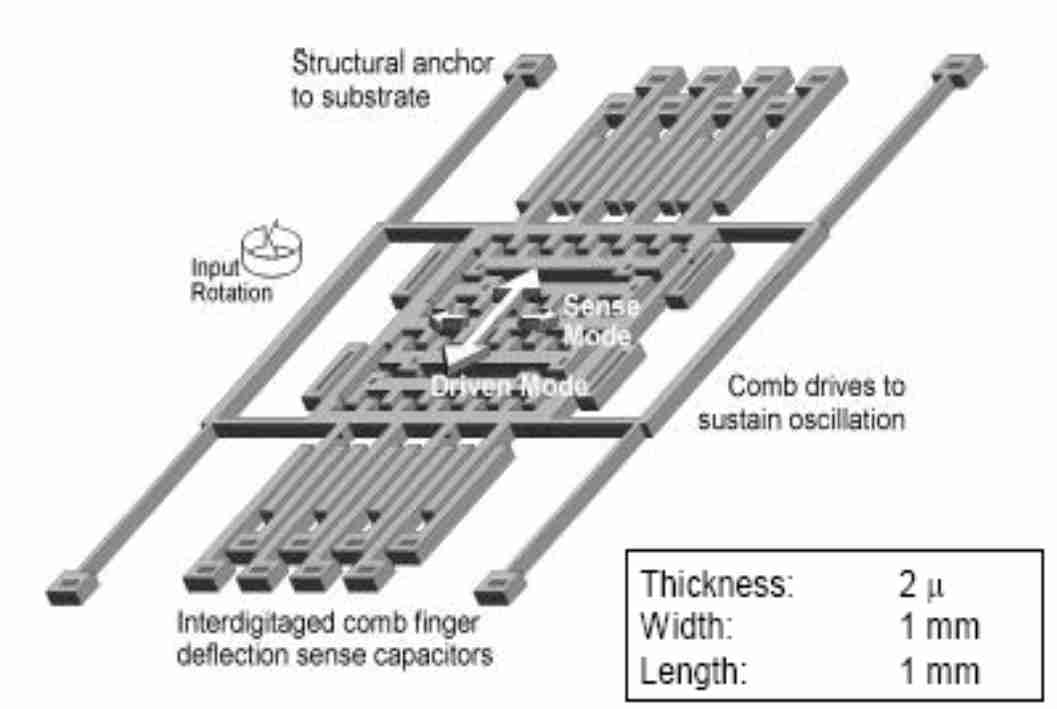 ( Clark, W.A., Howe, R.T. and Horowitz, R. Surface micromachined Z-axis vibratory rate gyroscope. Solid State Sensors and Actuator Workshop, pp. 283-287, 1996.);