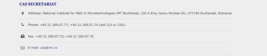 For further information, please contact the Conference Secretariat: cas@imt.ro.