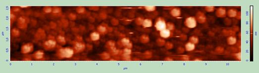 - s-au experimentat heterojonctiuni de p-NiO/n-Si, p-NiO/n-ITO (jonctiune transparenta) si bariera Schottky  p-NiO/Ti. Caracterizarea sistemului  p-NiO/n-Si a pus in evidenta  formarea unei jonctiuni pn care se deschide la ~ 2 V (10 mA)  in direct si prezinta tensiuni de strapungere peste 30V. Caracteristica I-V pentru barierele de NiO/Ti inregistrate cu AFM electric (varful AFM acoperit cu Ti) la curenti foarte mici (~10 nA)  au evidentiat tensiuni de deschidere in direct tot de 2V si in polarizare inversa strapungeri la > 4V.