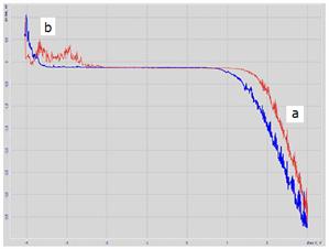 Caracteristica in direct (a) si invers (b) a jonctiunii  Ti/NiO prin AFM electric