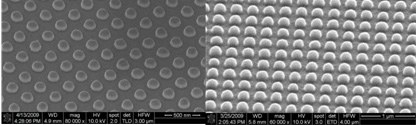 Lenses in epoxy resin obtained by replica molding with a master obtained by EBL in a) a thin layer of PMMA -950K layer; b) double PMMA layer (φ~150 nm, h ~200-300 nm)