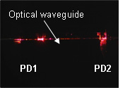 The optical coupling waveguide- photodiode is obtained with a grating realized in the bottom clading of the waveguide (pitch 4 µm).