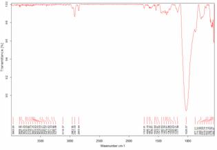 Şi în acest caz a fost folosită spectroscopia FT-IR pentru a verifica funcţionalizarea siliciului, motiv pentru care în figura de mai jos este prezentat spectrul FT-IR pentru MPTS depus pe substratul folosit.
