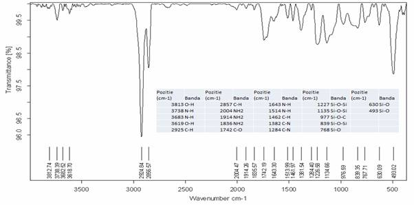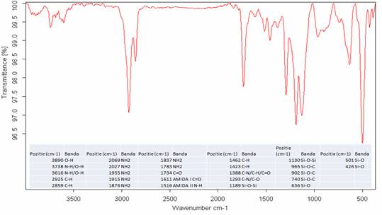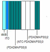 Caracterizarea prin spectrofotometrie in infrarosu cu transformata Fourier (FTIR) Aşa cum reiese din spectrul FT-IR (Figura 4) de mai sus, autoasamblarea pe suprafaţa de sticlă a (3-aminopropil) trietoxisilanului a avut loc cu succes, fapt confirmat prin prezenţa benzilor C-N (1382, 1284 cm-1), N-H (1643, 1514 cm-1), C-H (2925, 2857 cm-1), şi Si-O-Si (1227, 1135 cm-1). Pe o suprafaţă de sticlă (se întelege în general siliciu Si, oxid de silicu SiO2) nefuncţionalizată/nemodificată, în urma analizei FT-IR (Figura 4), doar prezenţa grupărilor O-H şi Si-O ar trebuie să apară în spectrul FT-IR.În urma analizei FT-IR confirmarea reacţiei de cuplare a biotinei cu lamela de sticlă modificată cu (3-aminopropil) trietoxisilan a fost validată de prezenţa grupărilor –C=O (1611 cm-1, Amida I) şi –N-H (1516 cm-1, Amida II) (Figura 3). 3.C. Auto-asamblarea pe suprafete polimerice prin dezvoltarea tehnicii layer-by-layer 3.C.1. Acoperiri biocompatibile in vederea atasarii de diferite biomolecule- proteine: pe un suport polimeric se vor depune polielectroliti prin tehnica layer-by-layer – Raport experimentări Obţinerea prin tehnica layer-by-layer a structurilor multistratificate cu nanotuburi de carbon folosind ca substrat ITO ITO reprezintă un amestec format din oxid de indiu dopat cu oxid de staniu, proporţia celor doi oxizi fiind 9/1. Amestecul este transparent şi lipsit de culoare în straturi subţiri, iar în volum capătă culoare galbenă spre gri. Datorită proprietăţilor pe care le prezintă, conductivitate electrică şi transparenţă optică, precum şi uşurinţei de a se depune sub formă de film subţire, acesta este unul din cei mai utilizaţi oxizi transparenţi şi conductivi. Ca şi în cazul celorlalte filme transparente cu proprietăţi conductive, trebuie făcut un compromis între aceste două proprietăţi, întrucât creşterea grosimii şi a concentraţiei purtătorilor de sarcină determină mărirea conductivităţii materialului dar scade transparenţa. Datorită costului ridicat şi surselor limitate de indiu, fragilităţii şi lipsei de flexibilitate a straturilor de ITO, dar şi preţului ridicat necesar asigurării vidului, s-au căutat diverse soluţii pentru a înlocui acest amestec de oxizi. O alternativă ar putea fi nanotuburile de carbon. O alta ar putea să constea în utilizarea filmelor de grafene, care sunt flexibile şi prezintă transparenţă de 90%, dar rezistenţa electrică este mai scăzută decât pentru ITO. Filmele metalice subţiri pot constitui de asemenea o variantă. Pentru acest experiment ITO s-a depus în film subţire de 5 nm de pe un suport de sticlă folosind instalaţia de depunere Electron Beam Evaporation an DC sputtering system - AUTO 500, BOC Edwards, Marea Britanie. Din acesta s-au tăiat lamele cu dimensiunile 0,3´2,5 cm2, pentru a putea fi folosite ca substraturi pentru tehnica LBL. Pentru depunerea pe lamele s-a folosit soluţie de PDADMA în clorură de sodiu, şi PSS cu aceeaşi concentraţie (în acelaşi solvent). Următoarea etapă a fost utilizarea CNT, dispersate în soluţie de PDADMA prin ultrasonare şi apoi a soluţiei de PSS. Pe structura formată anterior s-au depus astfel trei bistraturi CNT-PDADMA/PSS.