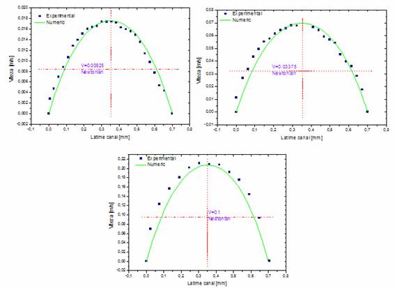 3.B.2. Caracterizarea structurilor obţinute – Raport caracterizare Curgerea in microcanale a fost caracterizată cu ajutorul µPIV (Micro Particle Image Velocimetry). În µPIV accentul este pus pe abilitatea realizării de măsurători exacte a câmpurilor de viteză cu o rezoluţie spaţială de un micron. Procedura µPIV este în strânsă legătură cu interacţiunea dintre fluid şi particulele trasoare, ce apare la scările de lungime submicronică. Astfel, µPIV-ul poate fi gândit ca o aplicaţie nanotehnologică, prin care se realizează cercetări ştiinţifice de mecanica mediilor continue. Particulele trasoare sunt particule florescente, corespunzătoare lungimii de undă a laserului folosit si ele sunt iluminate în interiorul curgerii, apărând ca puncte luminoase în imaginile achiziţionate. O importantă consecinţă a iluminării volumului de lucru este aceea că toate particulele din volumul iluminat vor contribui la calitatea imaginilor achiziţionate. Fără îndoială măsurătorile realizate cu ajutorul sistemelor µ-PIV sunt afectate de erori de măsură. Însă în condiţii experimentale bine determinate ele pot fi evaluate corect şi nu pot fi mai mari de 2%, ceea ce conduce ca metodele de măsurare experimentale µ-PIV să devină metode experimentale nu numai calitative dar şi cantitative.