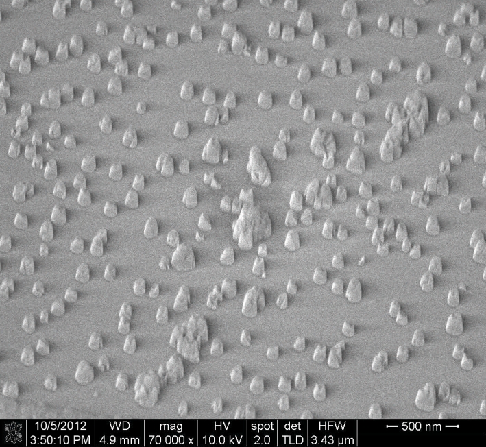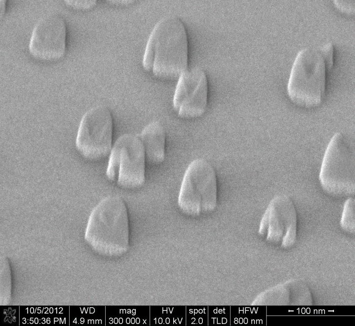 Studiul experimental privind folosirea RIE pentru controlul morfologiei si rugozităţii suprafeţei, dar şi pentru creşterea hidroficităţii în aplicaţii biologice De obicei, modificarea schemei de depunere se face prin depunere sub un unghi sau prin rotire. Unghiul de înclinare este unghiul format de direcţia de corodare sau depunere şi normala la suprafaţa substratului. Prin acestă metodă se pot obţine prin pulverizare catodică structuri sub formă de triunghiuri alungite sau duble printr-o depunere la un unghi dat sau mai multe depuneri la unghiuri diferite. Din păcate, depunerile sau corodările înclinate au o adaptare limitată datorită restricţiilor formei măştilor. De aceea metoda aleasă de noi a fost modificarea măştilor coloidale prin bombardament cu ioni reactivi din plasmă. O altă metodă agreată de noi a fost modificarea formei sferice a particulelor coloidale printr-o post-procesare adecvată a matricei particulelor coloidale auto-asamblate. In particular, RIE, bombaramentul ionic, sau tratamentul termic oferă metode versatile pentru fabricarea modelelor nanoscopice noi, care n-ar fi putut fi obţinute prin tehnici litografice convenţionale. Particulele de oxid de siliciu au fost deformate prin bombardament ionic şi expandate în planul perpendicular pe direcţia fascicolului de ioni. RIE este foarte versatilă în modificarea măştii coloidale prin schimbarea dimensiunii şi formei constituenţilor particulelor coloidale. Metoda de bombardament cu ioni reactivi din plasmă (RIE) a fost folosită pentru controlul morfologiei şi rugozităţii suprafeţei, dar şi în fazele următoare ale proiectului pentru creşterea hidrofilicităţii suprafeţelor pentru aplicaţii biologice. Straturi bine-organizate de particule coloidale non-sferice se pot fabrica folosind anizotropia RIE pe multistraturi sferice de latex PS, unde stratul cel mai de sus se comportă ca şi o mască pentru modificarea suprafeţei particulelor. Modelul rezultat şi forma particulelor depind de orientarea cristalului faţă de substrat, de numărul de straturi coloidale şi de condiţiile procesării RIE. Efectul de umbră al particulelor din straturile de sus asupra straturilor de dedesubt conduce la obţinera de structuri polimerice corodate non-sferic. Cu o mască poligonală au preparat matrici de găuri şi doturi cât şi doturi magnetice metalice multistrat. Este de aşteptat ca optimizarea ulterioară a condiţiilor experimentale şi combinaţia cu alte tehnici litografice să conducă la noi modele la scară nano. Litografia coloidală poate fi folosită cu o matrice 2D ca şi masca-umbră sau cu interstiţiile dintre particule ca şi ferestre deschise pentru ca ionii reactivi să creeze denivelări sau pori pe un substrat. Litografia coloidală dă libertatea de control atât a dimensiunii caracteristice cât şi forma nanoporilor prin schimbarea dimensiunii particulelor şi secvenţa de stivuire a matricelor multistrat sau prin folosirea corodării cu rezoluţie unghiulară.