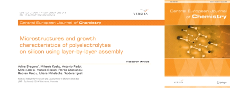 "Microstructures and growth characteristics of polyelectrolytes on silicon using layer-by-layer assembly", Bragaru, A., Kusko, M., Radoi, A., Danila, M., Simion, M., Craciunoiu, F., Pascu, R., Mihalache, I., Ignat, T.