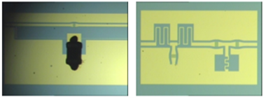 6. We have fabricated and tested all the test structures and demonstrators (Figure 6): (i) dual-band metamaterial-based patch antennas and antenna arrays in X band; (ii) planar varactors based on interdigitated capacitors (IDCs); (iii) phase shifters based on IDCs; (iv) reconfigurable bandpass filters; (v) the final demonstrators, all of the above based on ultra-thin films of HfZrO ferroelectric.