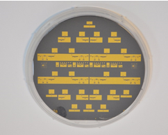 Figura 6. Optical picture of the whole 4-inch HRSi/HfZrO wafer with the fabricated test structures and demonstrators. |