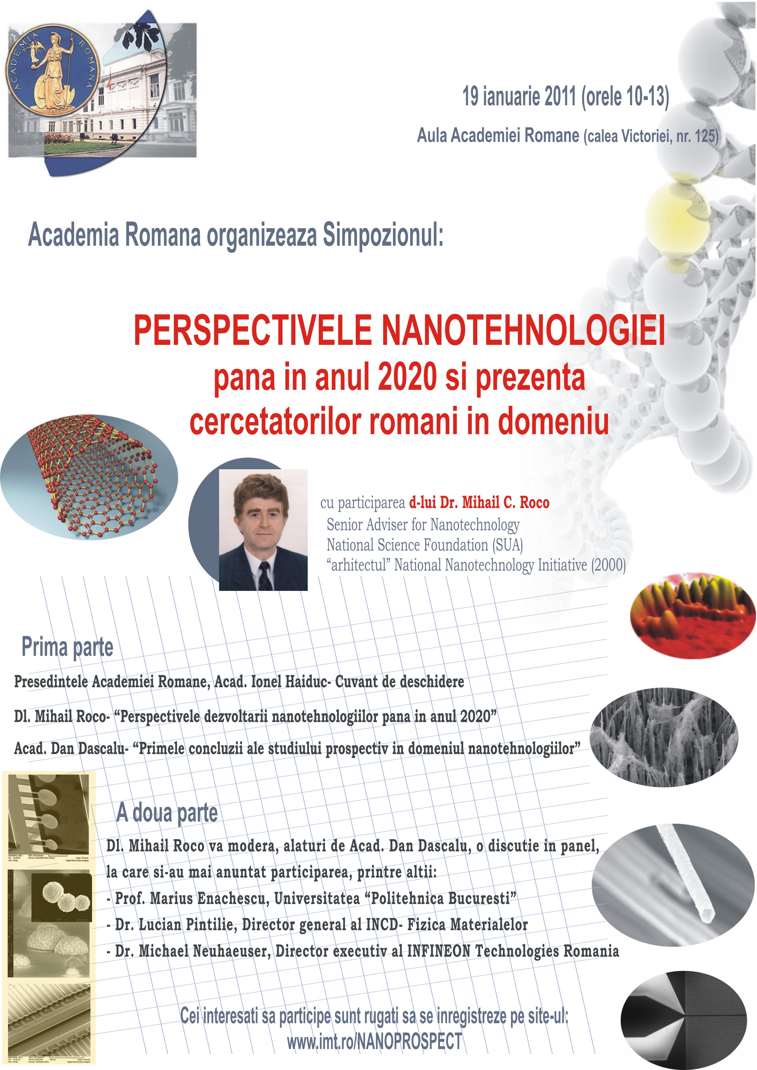Simpozionul “Perspectivele nanotehnologiei pana in 2020 si prezenta cercetatorilor romani in domeniu”, 19 ianuarie 2011, orele 10, Aula Academiei Romane (Bucuresti, Calea Victoriei, Nr. 129)