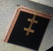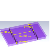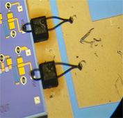 Fotografie dinspre placheta a unei antene slot dublu foldat suspendata pe membrana dielectrica subtire fabricata prin microprelucrarea siliciului de inalta rezistivitate Caracteristica de radiatie simulata pentru o antena dublu slot foldat microprelucrata pentru gama de frecvente de 220 GHz [A.C. Bunea et al. „220 GHz Membrane Supported Folded Slot Antenna Array”, IEEE CAS 2013] Modelul electromagnetic 3D pentru o matrice de antene 4x1 fabricata in tehnologia multistrat de ceramici sinterizate la temperaturi joase (LTCC) [A.C. Bunea et al. „Experimental Characterization of a 94 GHz LTCC 1x4 Microstrip Patch Antenna Array”, IEEE APMC 2015] Detaliu al integrarii hibride al unui amplificator de zgomot redus pentru banda W intr-un sistem frontend de receptie pentru aplicatii de imagistica pasiva _________________________________________________