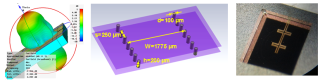 Modelare electromagnetica avansata a antenelor de inalta performanta pentru frecvente din gama 35-220 GHz, precum si a componentelor necesare pentru conectarea si integrarea lor in sistem. De exemplu linii si componente in tehnica ghid de unda coplanar (CPW), linii si componente in tehnica ghid de unda integrat in substrat (SIW), tranzitii CPW-SIW, structuri de test pentru masurarea permitivitatii dielectrice efective.