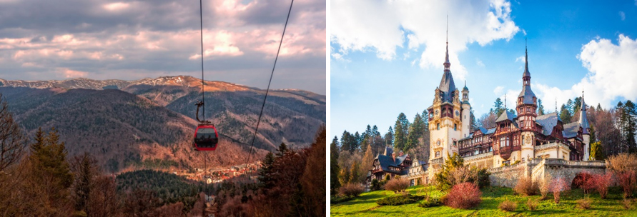 By foot, by car, by bus or by cable transportation, you can reach very interesting places, like Peles Royal Castle, from the XIX century, which is the most visited museum in Romania, and to other places of cultural and historical interest: Pelisor Castle, Sinaia Casino, George Enescu Memorial House, Sinaia Monastery.