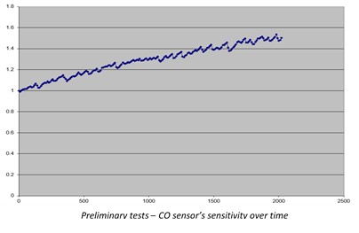 The CO sensors were fabricated during 2019. The sensitive layer was further optimised, so that to maximise the electric response to the added carbon monoxide concentrations. The sensors showed a good response for CO concentrations of 10 ppm.