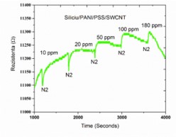 From the sensing element’s point of view, initial tests for the CO sensors functionalisation were performed, by depositing PANI (polyaniline) on the interdigitated electrodes (both on silicon and alumina substrate).