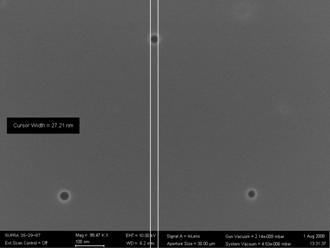 The devices is a 2-level diffractive optical element obtained by Electron beam lithography in a PMMA layer 160 nm thick.(first time in Romania). The pixel size is 1 mm . The size of the DOE is 1x1 mm2.