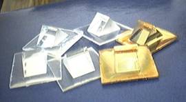 Fig. 12.a) Images of the replicated prisms (with and without Au on the base);