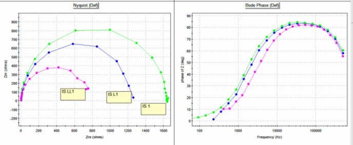 Impedance spectroscopy (IS) is an experimental technique that compares the electrical response of a test system to a time varying electrical excitation to delineate interfacial and bulk material parameters and it could be applied for: