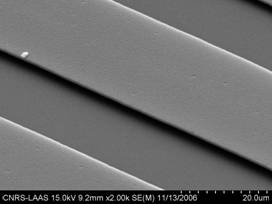 silicon optical waveguides on SOI wafers: aoptical magine; b) SEM imagine