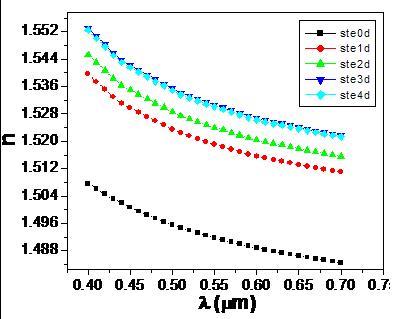 To prepare titanium oxide - polymethylmethacrylate nanocomposites, the sol-gel process and direct embedded of titanium oxide nanoparticleswere used. The refractive index increases for the polymer thin films modified with TiO2 compatatively with refractive index of undoped polymer thin films (i.e. by doping with TiO2 the refractive index of PMMA rise from 1.504 to 2.075 at 450 nm).