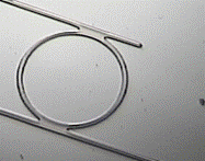 6.1. Microsytem for optical interconnects composed of PMMA waveguides fabricated by deep-UV induced refractive index modification integrated with the silicon photodiodes. A polyimide layer was used to improve the adhesion of the PMMA layer to the silicon wafer. The end phase of the waveguide was patterned by lithography methods to obtain low fibre to chip coupling loss. The propagation loss of the waveguides was 0.16 dB/cm at 650 nm. The fibre to chip coupling loss was 1.2-2.7 dB/facet depending on the dicing quality. Over the active area of the photodiode, this layer is removed to allow a gradually transfer of the optical power from the waveguide into the photodiode by leaky wave coupling A controlled degree of coupling within a reasonable coupling length can be achieved with a tapered geometry. If the coupling length is short enough, most of the optical power remains in the waveguide and the waveguide can be coupled with other photodiodes thus the two photodiodes are optically interconnected. In our experiments, 47% of the optical power was transferred into the photodiode within a coupling length of 200mm.