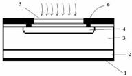 Fig. 9. a) Schematic structure of the photodetector with selective spectral response: 1-backside metallization; 2- N+ silicon substrate; 3- N silicon epitaxial layer; 4- P+ diffused region; 5-optical filter; 6-front side electrical contact. b) Optical microscope image of the structure. c) Spectral response of the structure.
