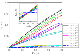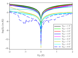The ID-VG dependence of the FET is displayed below: