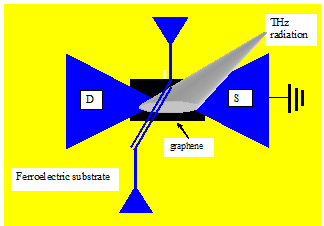 The demonstrator is a detector based on a graphene/ ferroelectric FET in copalaner waveguide technique where the gate and the drain electrodes are formed by a splitting-gate bow tie antenna.