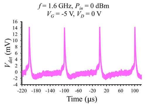 The thermoelectric signal is measured by pumping microwaves at different powers in the range 0.1-10.5 GHz , the drain bias being 0V. The result is displayed in Fig. 5