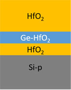 - Ge-HfO2: HfO2 35 W rf, Ge 20 W dc thickness d = 10 nm;