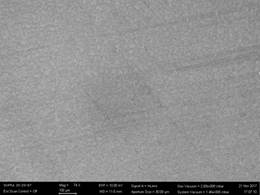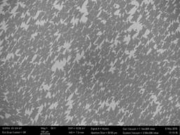 Imagine SEM: grafenă crescută uniform pe substrat de cupru. Imaginea surprinde un proces de creștere complet, domeniile de grafenă formează un film continuu pe suprafață și acoperă în totalitate suprafața catalizatorului.