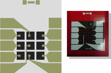 Imaginea la microscopul optic a fotodetectorului cu 3x3 elemente active realizat.