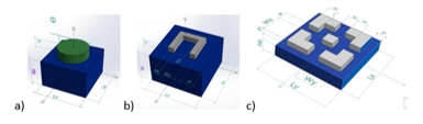 The elementary cell through which can be obtained a silver metasurfaces with: a) nano-disks; |