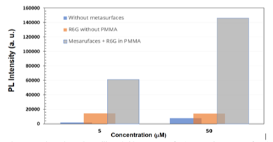 The developed plasmonic or dielectric metasurface platforms offer the possibility of fluorescence enhancement with enhancement factors between 1.17 and 423, depending on the geometry of the meta-atoms, the materials used and the type of fluorophore.