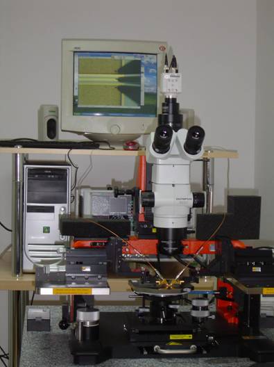 Sistemul de masura se va compune dintr-un analizor vectorial de retele (VNA), pentru masurarea transmisiei si reflexiei semnalelor de microunde si unde milimetrice in banda (0,8 – 65 GHz) si accesorii (cabluri, antene, sisteme de calibrare), o masa de tip optic, adica o masa metalica grea cu amortizare hidraulica. Proberele pentru masurari pe placheta sunt legate prin cabluri semirigide de analizorul vectorial capabil sa masoare automat parametrii S, in special transmisia si reflexia in banda 0,8 – 65 GHz. |