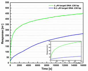 Răspunsul SPR pentru 1 µM și 0.1 µM secvență țintă |