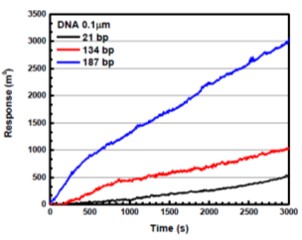 Prin atașarea fragmentelor ADN monocatenar de suprafața filmului de aur, am studiat modificările raspunsului SPR pentru trei sonde ADN având dimensiuni diferite, 21, 134 și respectiv 187 pb.
