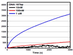 Cea mai mică concentrație determinată a fost 10nM pentru secvența AND de dimensiune 187bp.