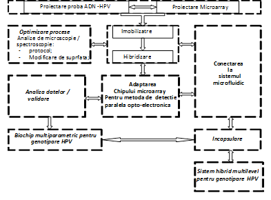 Obiectivul principal este ca la final, analiza datelor noastre sa fie confirmata cu protocolul de analiza standard ELISA (sau RT-PCR), permitand astfel trecerea catre asamblare in dispozitive mai usor de manipulat, pe baza modelului functional inovator ce va fi obtinut, al unui sistem integrat hibrid pentru genotiparea HPV.