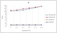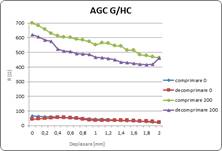 Figura 5. Caracterizare electrică a AGC G/HC la comprimare-relaxare pe distanța de 2 mm: înainte (jos) și după (sus) 200 de cicluri comprimare-relaxare. |