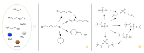 The main degradation products of CWA, obtained in this study, were summarized in the schematic illustration found in Figure 3.