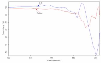 Spectre FTIR pentru pulberile de ZnO si Ag/ZnO |